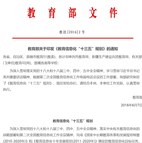 教育部十三五規劃:以“構建網(wǎng)絡(luò )化、數字化、個(gè)性化、終身化的教育體系,建設‘人人皆學(xué)、處處能學(xué)、時(shí)時(shí)可學(xué)’的學(xué)習型社會(huì )。