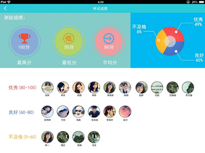 課堂教學(xué):按課表列出教師要上課的班級以及今日課程列表,播放備課文件,進(jìn)行在線(xiàn)教學(xué),支持多種教學(xué)模式:通過(guò)計算機、平板電腦無(wú)線(xiàn)投屏播放課件,課堂師生多屏互動(dòng)教學(xué) ü實(shí)時(shí)反饋教學(xué)質(zhì)量